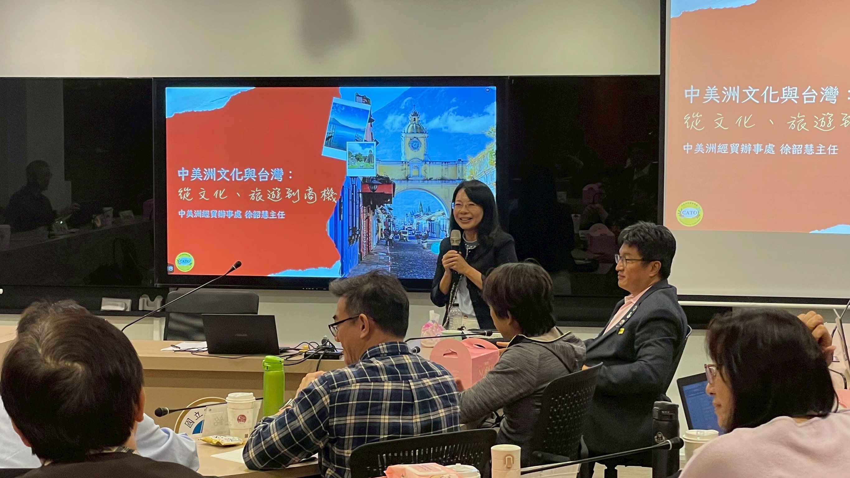 2025年11月21日,管理大師講座邀請陳怡辰、徐韶慧講師,與同學分享中美洲文化與台灣。